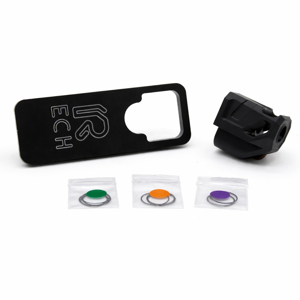 Made in USA, manufactured right here in Idaho. The RDI-ARMS Compensator for the Springfield Echelon is a top contender for recoil management. Our Large Volume Single Port(LVSP) design drastically reduces vertical & felt recoil, and improves the shooters ability to keep the firearm centered throughout the recoil cycle thanks to the side porting.
